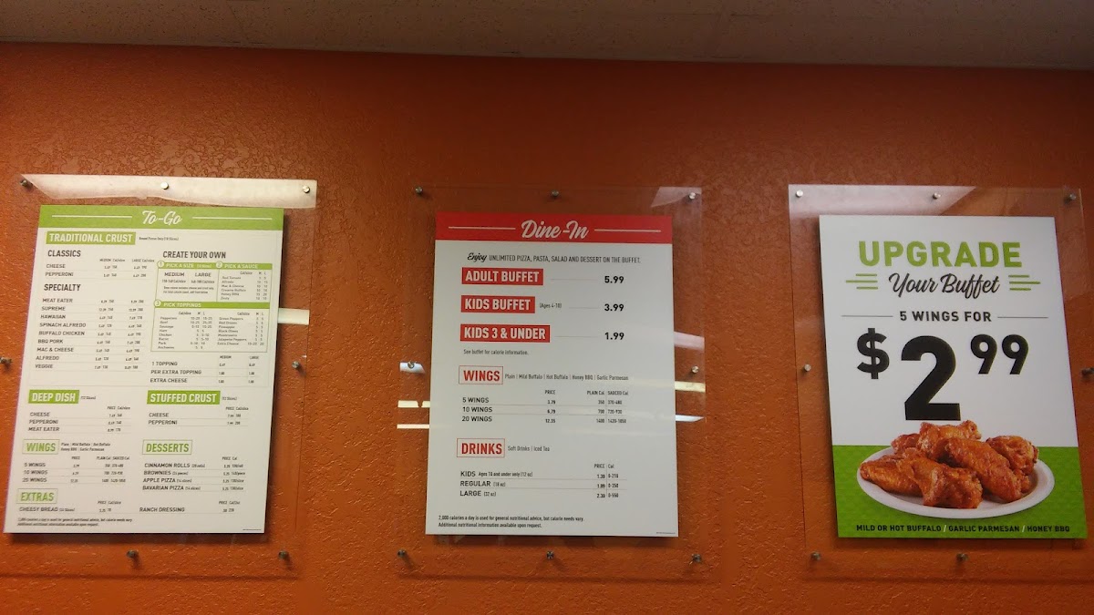 All you can eat buffet includes never ending pizza, pasta, sides, salads, and desserts!